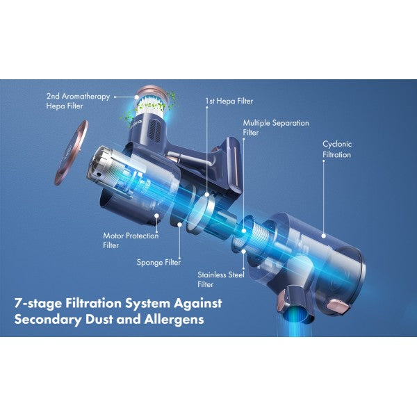 Homeika cordless stick vacuum cleaner is equipped with 300W upgrade motors, providing a powerful 28 KPA suction power to capture pet hair, cat litter, dirt and other chaotic debris whether on the carpet or floor.